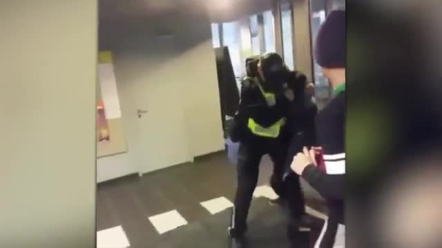 Видео: пьяный школьник избил пожилого полицейского в Риге