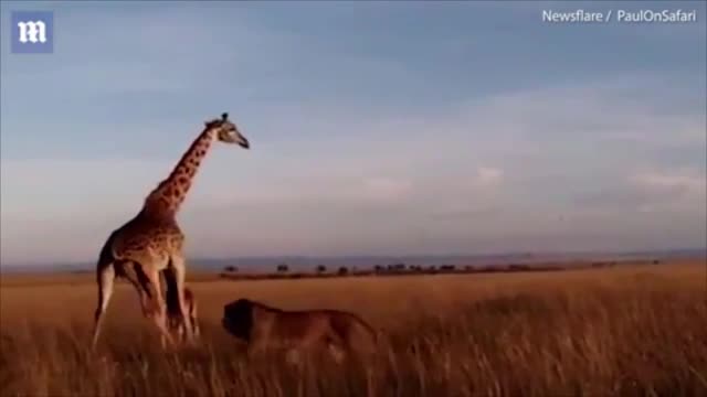 Сообщается, что запись была сделана 27 ноября этого года на территории заповедника Масаи-Мара. На кадрах видно, как хищник проходит мимо двух жирафов. Оказавшись позади своих жертв, лев пытается незаметно подкрасться к ним, чтобы напасть. Но мать-жирафиха успевает обернуться и смотрит прямо на льва, в результате чего тот решает не ждать и бросается в атаку.