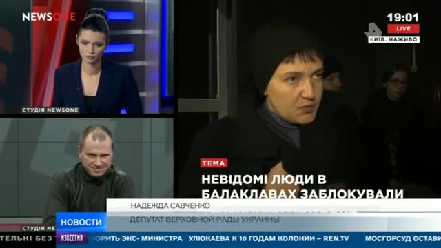 Беглый губернатор Одессы был не единственным, кто воспользовался суетой вокруг NewsOne, чтобы лишний раз попасть в телеэфир. Надежда Савченко тоже приехала.