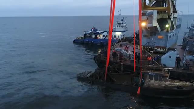 Видео: затонувшее судно "Монни" подняли со дна Финского залива