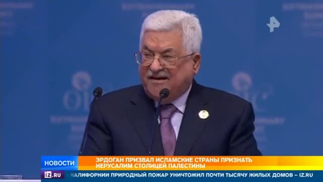 Москва не разделяет такую позицию турецкого лидера, заявил пресс-секретарь президента Дмитрий Песков. Однако слова Эрдогана сегодня легли в основу итогового документа на саммите организации исламского сотрудничества, он проходит в Стамбуле. Глава Палестины, выступая перед лидерами мусульманских стран, пригрозил выходом из всех международных организаций, если Трамп не откажется от своих слов. Самого американского президента Махмуд Аббас назвал преступником.