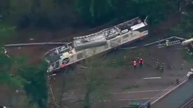 Страшную аварию с поездом в США сняли с высоты птичьего полета