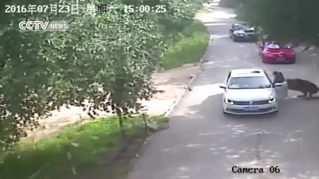 На кадрах видно, как девушка выходит из машины чем-то расстроенная, на нее сзади нападает тигр и утаскивает ее. Из машины выходит супруг, чтобы оказать ей помощь. В этот момент, автомобиль покидает и мать девушки. Пытаясь спасти свою дочь, которую утащил тигр, женщина погибает сама, ее дочка стала инвалидом.