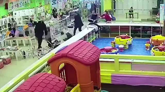 Трое хулиганов напали на мать с ребенком рядом с детской площадкой, расположенной в торговом центре китайского города Телин.