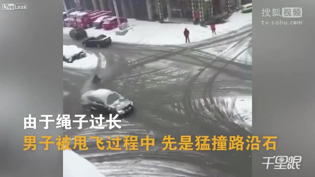 В Сети появилось видео, на котором парень на доске, привязанной к автомобилю, на огромной скорости делает поворот на 180 градусов и влетает в препятствие. Инцидент произошел на перекрестке в одном из китайских городов. Невинная шалость обернулась тяжелыми травмами.