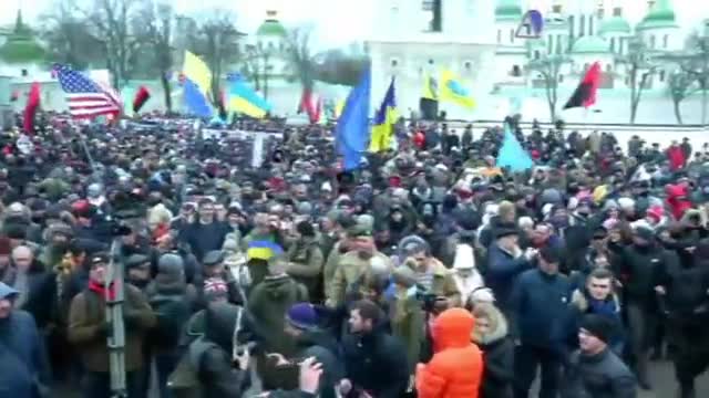 "Мы вызываем гражданина Порошенко на "майдан" 18 февраля для оглашения решения об отставке. В 12:00 (13:00 мск) мы выходим на "майдан" в Киеве, на "майданы" всех городов Украины, нас выйдут миллионы. Прочь с нашего пути", - зачитал резолюцию депутат Верховной рады Юрий Деревянко.