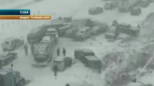 Массовая авария в США. На трассе в штате Айова столкнулись около полусотни машин. Автомобильный Армагеддон запечатлела камера наблюдения.