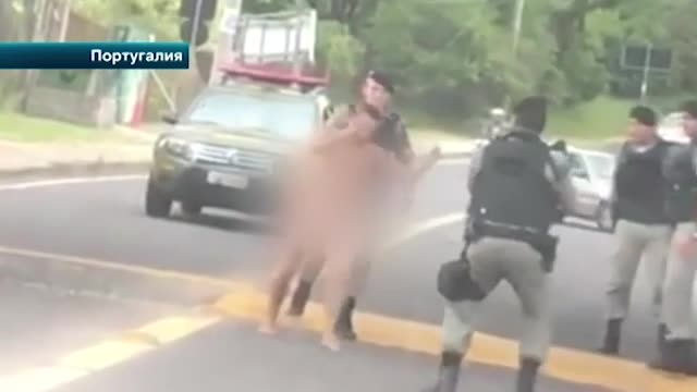 В Португалии обнаженный безумец устроил драку с вооруженными полицейскими