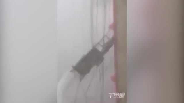 Видео: мойщиков окон в Китае чуть не сдуло во время урагана