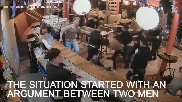 В массовую драку превратилась ссора двух посетителей паба в британском Лидсе. Жестокая разборка оказалась снята на камеру видеонаблюдения, кадры публикует Yahoo News.