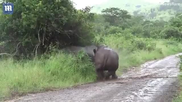 Жестокое сражение двух носорогов за свою территорию попало на видео