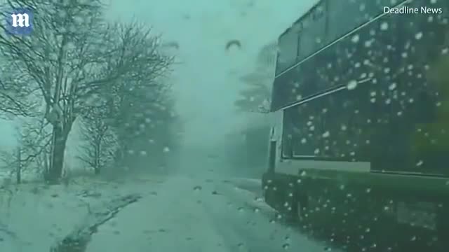 В шотландском Эдинбурге водителю автобуса, сорвавшегося в занос на заснеженной трассе, удалось избежать столкновения со встречным автомобилем.