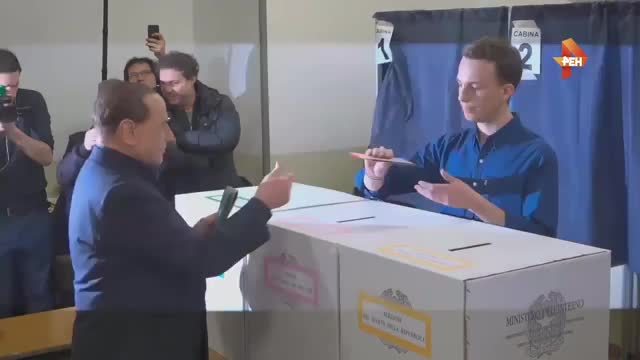 Видео: Берлускони пришел проголосовать на парламентских выборах в Италии
