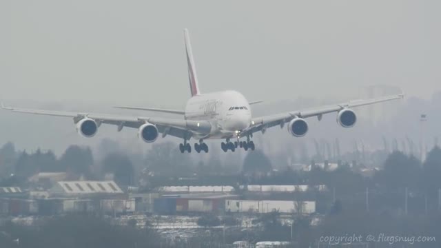 В Сети появилось видео посадки в Британии лайнера Airbus A380 в сильнейший шторм, вызванный мощным холодным фронтом под названием "Зверь с Востока".