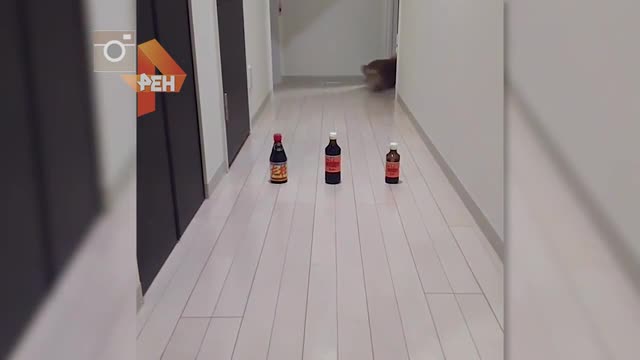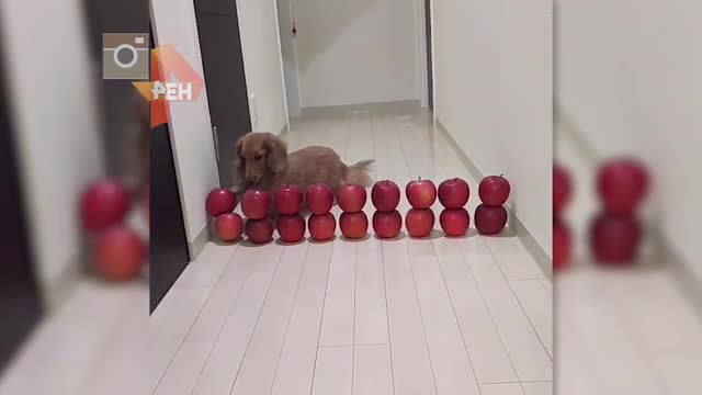 У жителя Японии Такао две собаки — такса и той-спаниель. Оба питомца достигли почтенного возраста и веса, поэтому передвигаются по дому очень медленно. Чтобы не давать им скучать и валяться целыми днями, Такао придумал для них развлечение — бег с препятствиями. Он устанавливает в коридоре своего дома различные барьеры — из яблок, коробок, бутылок с водой и других предметов.