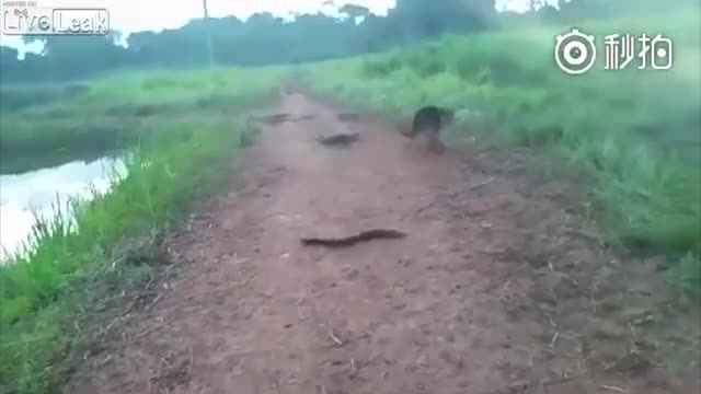 В Сети набирает просмотры видео с неожиданной реакцией собаки на электрического угря. На кадрах, снятых очевидцами, собака подходит к лежащему на земле неподвижному объекту и хватает его зубами, но тут угорь начинает шевелиться. Судя по всему, пес не ожидал, что его добыча будет биться в конвульсиях.