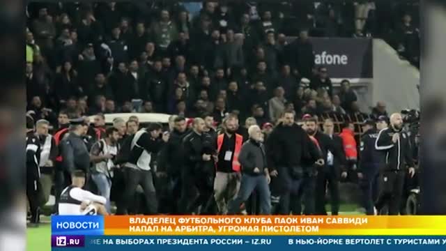 На опубликованных кадрах видно, что у Саввиди на ремне была кобура с предметом, похожим на пистолет. Футболисты АЕКа из-за угрозы своей безопасности отказались доигрывать матч.