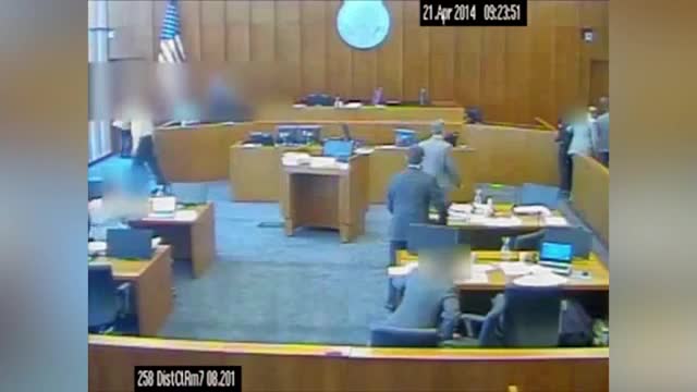 В США опубликовали видео стрельбы в зале суда, где на свидетеля напал с карандашом ответчик