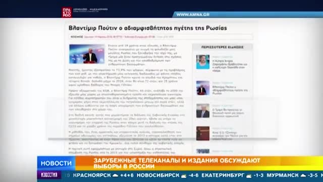 Немецкие журналисты называют результат Путина "лучшим в истории", греческое агентство АМНА выносит заголовок "Владимир Путин - бесспорный лидер России".