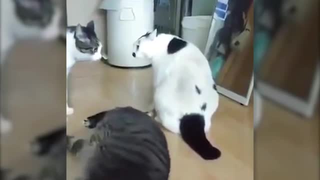 Видео: слишком толстый кот случайно остановил драку двух соратников