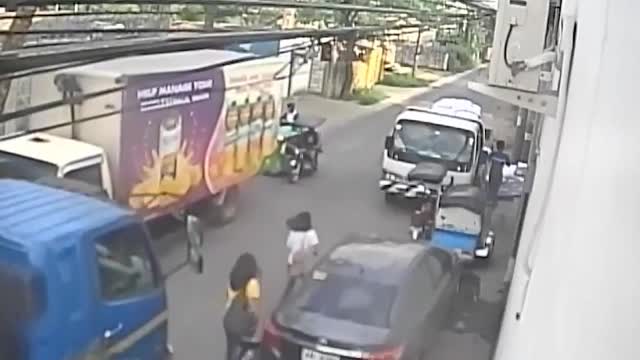 Сообщается, что инцидент произошел 21 марта на Филиппинах. Две женщины вышли из грузовика в тот момент, когда на другой стороне дороги большой белый грузовик, пытающийся протиснуться через узкую щель, сбивает большое дерево, которое упало на землю, угодив прямиком на одну из женщин.