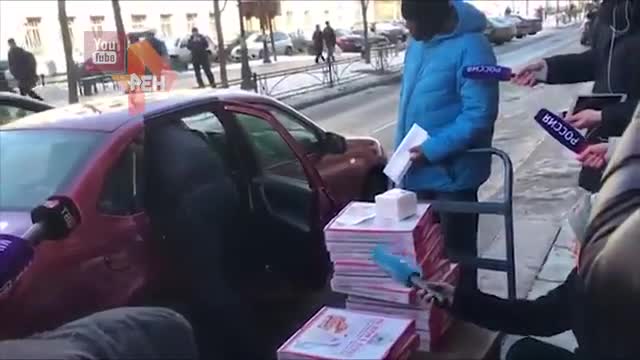 Сотрудникам представительства привезли 21 коробку с пиццей.
