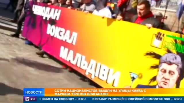 Акцию сами организаторы называют маршем против олигархов, и уже понятно, что главное требование — это отставка Петра Порошенко. Во главе колонны даже развернули транспарант с портретом президента и надписью: "Чемодан, вокзал, Мальдивы". Из главка МВД получен приказ вывести на улицы полторы тысячи полицейских, как сообщается, для охраны порядка. Радикалов через громкоговорители призывают добровольно сдать оружие и взрывчатку.