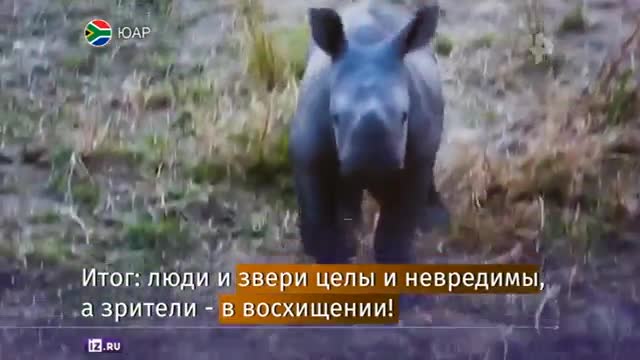 Храбрый маленький носорог бросился защищать мать от ветеринаров. Врачи лишь хотели залечить рану на её лапе и подошли слишком близко. Малыш увидел в этом угрозу для мамы и атаковал двоих мужчин. Итог: люди и звери целы и невредимы, а зрители - в восхищении!