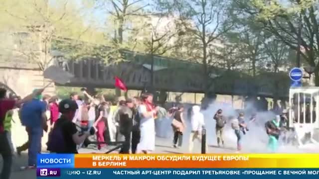 Накануне он уже вступил в словесную перепалку с протестующими, но от планов по реформам отказываться не собирается. Сегодня Макрон отправился в Берлин общаться с Ангелой Меркель.