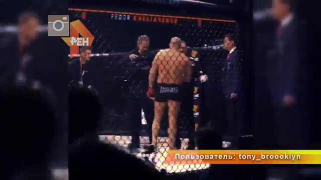 Зрители, которым посчастливилось увидеть своими глазами бой российского бойца Федора Емельяненко и американца Фрэнка Мира, публикуют в соцсетях видео нокаута.