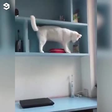 На этих кадрах можно увидеть, как пушистый питомец поочередно сбрасывает предметы с полок. Вниз летят в том числе полотенце для рук и бутылка с жидкостью. По этим кадрам даже трудно понять причину действий кошки, так как эти предметы ей ничем не мешали.