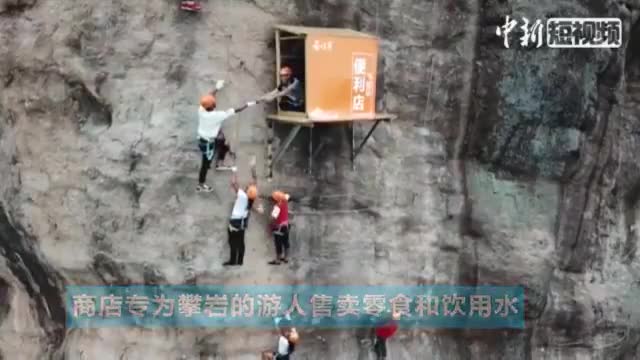 В Национальном геологическом парке Шинуцзай в Китае администрация установила специальный магазин, который продает закуски и напитки скалолазам, передает RT.