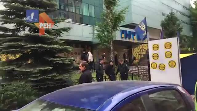 В Киеве националисты штурмуют офис телеканала "Интер" — они раскрасили вывеску у входа в цвета украинского флага. Об этом сообщает РИА "Новости".