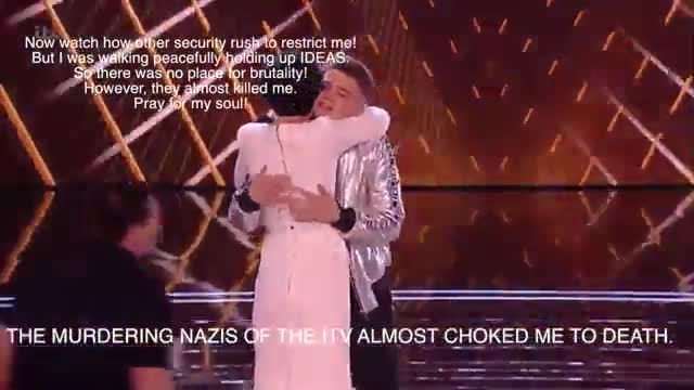 На "Евровидении" он успел оскорбить прессу Великобритании, после чего был задержан охраной, а певица продолжила выступление. Известно, что мужчина был доставлен в полицейский участок.