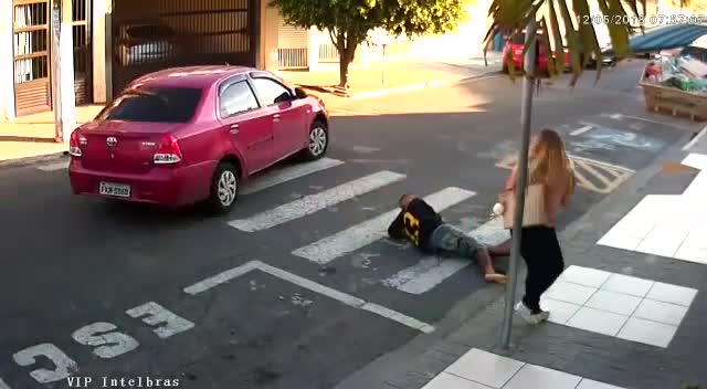 На кадрах видно, как вооруженный мужчина, наставив пистолет, требует у группы взрослых и детей отдать ему деньги и ценные вещи. В это время одна из женщин, чья дочь учится в ближайшей школе, достала пистолет и трижды выстрелила в него.