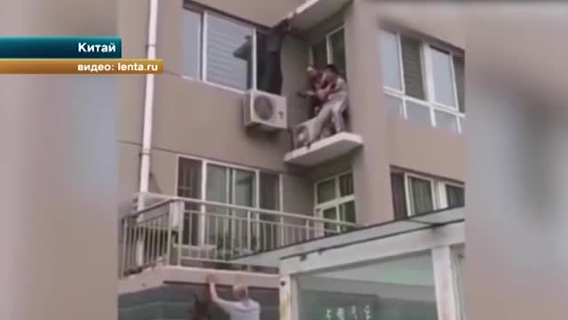 Чудесное спасение в Китае. Малыш по недосмотру родителей выбирается из окна на выступ снаружи дома. Еще шаг, и сорвется. К счастью, на опасность мгновенно реагирует бывший военный, который случайно оказался поблизости. В отличие от зевак, которые лишь снимают происходящее на камеры мобильных, мужчина решительно, по-армейски проникает в квартиру двумя этажами ниже. Успевает как раз вовремя: мальчик срывается с бетонной площадки и стремительно летит вниз. Кажется, ему грозит неминуемая гибель. Именно в этот момент герою — иначе не скажешь — удается поймать ребенка за ногу. Как ему это удалось сделать, трудно понять и после многократного просмотра этого видео.