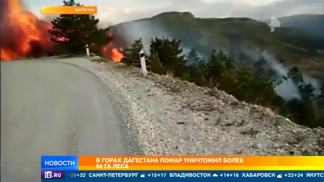 И по-настоящему горячо сейчас в Дагестане. Словно отражая характер, закаленный в горах, огонь без тени сомнений бросился в атаку на деревья и кустарники.