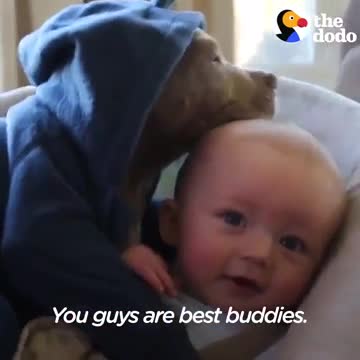В Сети набирает просмотры видео, на которое хочется смотреть снова и снова. Трогательные кадры сняли родители малыша, который лежит в люльке с собакой. Пес заботливо обнимает ребенка. Малыш, судя по его восторженной мимике, отвечает четвероногому другу любовью.