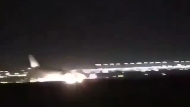 Видео: пассажирский самолет сел без шасси в Саудовской Аравии