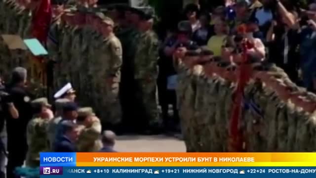 Когда во время речи украинского лидера бойцам начали выдавать береты нового образца, на плацу появились морпехи в старых черных головных уборах. Все происходящее транслировали в прямом эфире.