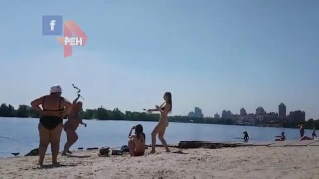 Видео: женщина с палкой атаковала девушек на пляже в Киеве
