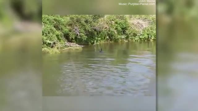 На этих кадрах можно увидеть, как два золотистых ретривера поплыли за птицей, позднее к ним присоединился и третий. Но каждый раз, когда они подплывали к утке, она быстро ныряла, ускользая от них.