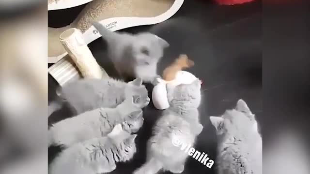 Видео: семь абсолютно одинаковых котят насмешили интернет реакцией на непонятный предмет