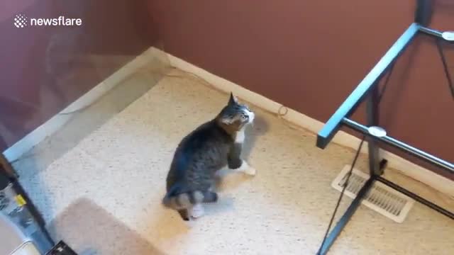Видео прыжка ничего не подозревающей кошки на стол без столешницы рассмешило Сеть