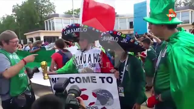 Мексиканские фанаты заполонили улицы у московского стадиона "Лужники", где сегодня их команда вступает в борьбу за кубок Чемпионата мира. В первой игре футболисты Мексики встретятся со сборной Германии.