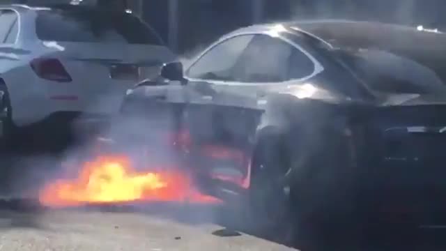 Электромобиль Tesla самовозгорелся на улице Лос-Анджелеса, видео пожара попало в Сеть.