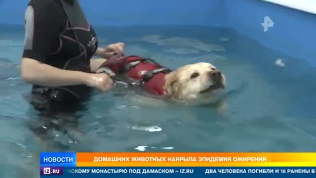 В общем все как у людей, говорят ветеринары. Еще и потому, что набрать вес животным очень легко, а вот чтобы сбросить – потребуется немало усилий. Например, в специальных фитнес-клубах. Четвероногих здесь тренируют на беговых дорожках, в бассейнах. Есть даже специальная гимнастика. Для похудения.