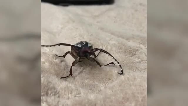 На видео два насекомых выглядят устрашающе из-за близкого расстояния съемки. Жуки начинают бить друг друга всеми своими лапками, а также наносить друг другу удары длинными усиками.