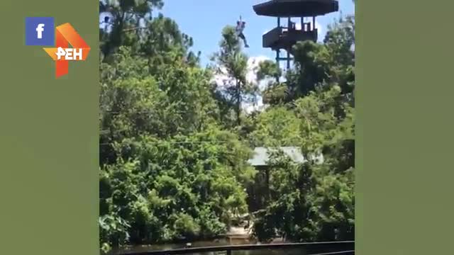 После того, как они застряли на 12-метровой высоте прямо над резервуаром с аллигаторами, в парке развернулась спасательная операция.