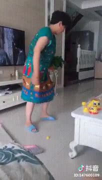На записи видео, как женщина занимается хлопотами по дому. В какой-то момент она пытается поднять с пола детскую игрушку. Однако выясняется, что под первой игрушкой скрывалась вторая, поменьше.